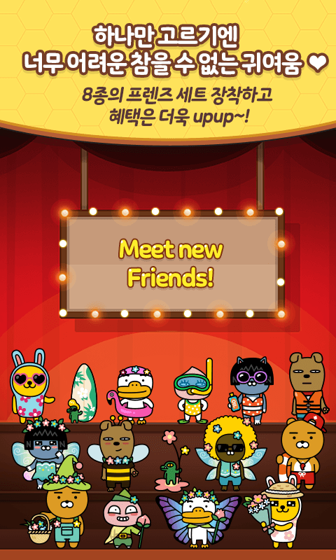 - 친숙한 카카오프렌즈 캐릭터: 라이언, 어피치, 무지 등 국민적인 사랑을 받는 카카오프렌즈 캐릭터들이 게임의 주인공으로 등장하여 플레이어들에게 시각적인 즐거움과 친근함을 선사합니다.